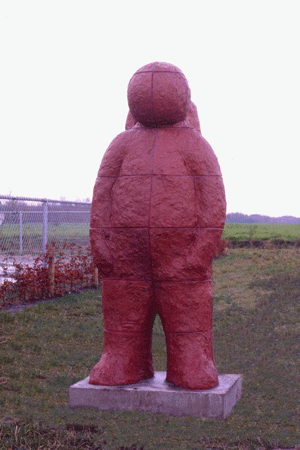 Explorer is a work commissioned by the local authority of Veendam, a town in the north of the Netherlands. The work consists of three individual pieces and is made for both the interior and exterior public spaces of the recently redesigned and expanded primary school in the town, Basisschool De Braskorf. The town itself, as well as this part of the country in general has a particularly strong historical connection to some of the earliest sea faring explorations from the Netherlands. As such the various elements of the works made for the school make a direct association between this very important and fundamental background and the nature of the school as educational centre in which each student can be understood to embark on their own passage of discovery. The works include a monumental sculpture adjacent to the school building outside which depicts a figure seemingly prepared for a future journey. Inside the school itself are two works, one a life size portrait of one of the students attending the school at the time the commission was undertaken, the other a vitrine installation.