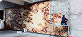 Landscape is a large ceramic tile mural cladding a thirty metre long by four metre fifty centimetre high exterior wall of a recently finished head office and factory building in the city of Dehua, Fujian Province in the south of China. The mural is realised using twenty three thousand individuallyl handmade and hued tiles which combine together to create both a practical exterior for this part of the building as well as a landscape image, the form of which appears somewhat undefined when observed from close by but when viewed from distance becomes clearly visible. The wall for which the mural was created was designed by the architect specifically to carry some form of adornment; adornment which I deemed should complement the building and its surroundings as well as enrich the lives and experience of the people working here. The wall in question forms part of an open courtyard and runs adjacent to an exterior walkway leading from the main entrance of the building to its central section. The wall acts then both to signify the importance of this location as well as an invitation to enter the building. The form of the tiles was designed specifically for this project, each having a unique three dimensional relief to further enhance the overall design.