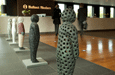 This Native Earthling series of sculptures is a permanent installation in the entrance foyer space at the headquarters in Nieuwegein of the multinational Dutch construction and engineering company, Ballast Nedam. These figurative works were made originally as part of a much larger series of the same name for the solo presentations Native Procreation in Eboracum in Amsterdam and Maliebeeld in Den Haag. The pieces are a continuation of themes related to representations of the human form which developed in previous years, with particular reference to work carried out during a work period at the European Ceramic Workcentre in 2001. The figures in this series utilise the nature of form, scale, posture, material, colour, and surface treatment to present a depiction of the body which is at once familiar yet full of possibility for reinterpretation. At first a seemingly neutral, passive image it is one suggestive of primitive portrayals, contemporary iconography, or futuristic humanoids. They refer collectively to concepts of homogeneity, uniformity, and similarity, though their singular treatment conceives of a range of unique individuals..