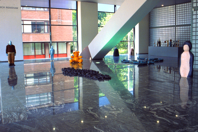 This exhibition was a presentation of sculptures made during previous years which had been taken up by a variety of corporate and museum collections, as well as those of several private individuals. In addition to this overview of existing works a series of new pieces from the Skinmen series were especially made for the occasion. The umbrella series of exhibitions entitled Maliebeeld in which my own solo show formed a part was conceived to celebrate those contemporary artists whose work is both sculptural, generally monumental in scale, and whose practice had been based largely within the visual arts context of the Netherlands. The theme of this and other exhibitions in the series being that of a presention of works held in a range of institutional collections of Dutch visual art linked directly to the location in which Maliebeeld was housed. The large open spaces of the Malietoren being home to the leading body representing Dutch corporations. Amongst the works either lent or made for the exhibition were those from the series Plaything (1996), Earthling Candyman (2001), Native Earthling (2004), and Skinmen (1997-2005).