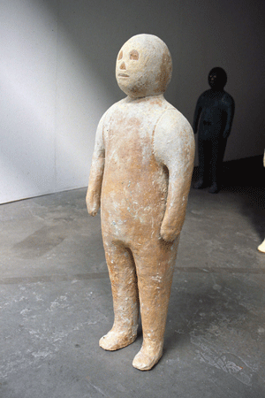Native Earthling is a series of ceramic works which were conceived initially for the solo presentation Native Procreation in Eboracum. These works, both individually and collectively, represent what can best be understood as a paraphrased rendering of the human identity. A pared down image which reflects the figure within a multitude of contexts and understandings. It's focus is one primarily concerned with the potential origin of these characters across time and era, as well as their perceived (in)activity. The seemingly neutral attitude of the posture is one which can be seen as expressing a variety of stances or behaviours. Waiting, frozen in time, guarding, or simply resting. The heterogenous position of each figure is accentuated by the specifics of colour and surface treatment, each of which presents a further potential interpretation of how and when the different individual sculptures should be placed. These works developed from a process set in place during previous years, with particular reference to the methodology used while undertaking a work period at the European Ceramic Workcentre in 2001.