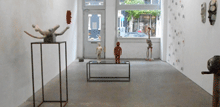 This group exhibition is an annual presentation of sculpture held in and around the castle ruins and surrounding gardens of the historic Ravesteyn estate in the south of Holland. The grounds are formed by a variety of gardens which encircle the remains of the castle at the garden's centre. For this event I installed a number of figurative works on a central wooded pathway leading up to the castle. As if the sculptures were traversing and following each other along a specially prepared walkway. The exhibition is organised by Stichting Stede en Vrije Heerlykheit.