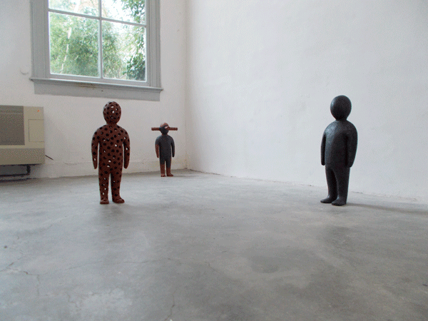 The exhibition Other Origins takes it’s name from the series of ceramic sculptures developed for this presentation. These figures are created from the same fundamental underlying mold-manufactured figure. This figure symbolises the human form as is understood across culture and time and is perceived both in terms of early or primeval depictions as well as those of a contemporary nature which incorporate a comparable stylised representation of anatomy. Onto this idealised human motif the singular character of each sculpture is described using a combination of clay material, colour palette, texture, glaze, and contrasting inanimate additions. The subsequent composition of each figure expresses a variety of characteristics, including predominantly the juxtaposition of apparently contradictory elements. This body of work should be understood as an exploration of comparability, uniqueness, similarity, and identity. The method of creation itself, contrasting sculpture and mold-manufacturing emphasising further these metaphorical references.