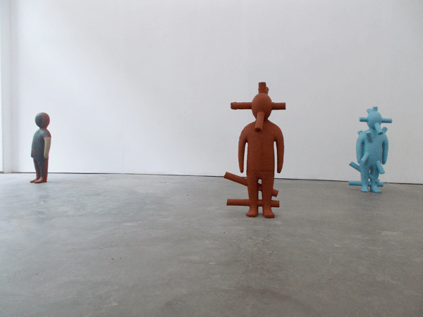 The exhibition Other Origins takes it’s name from the series of ceramic sculptures developed for this presentation. These figures are created from the same fundamental underlying mold-manufactured figure. This figure symbolises the human form as is understood across culture and time and is perceived both in terms of early or primeval depictions as well as those of a contemporary nature which incorporate a comparable stylised representation of anatomy. Onto this idealised human motif the singular character of each sculpture is described using a combination of clay material, colour palette, texture, glaze, and contrasting inanimate additions. The subsequent composition of each figure expresses a variety of characteristics, including predominantly the juxtaposition of apparently contradictory elements. This body of work should be understood as an exploration of comparability, uniqueness, similarity, and identity. The method of creation itself, contrasting sculpture and mold-manufacturing emphasising further these metaphorical references.