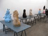 'Panoply' is a series of sculptures which uses the formal vocabulary of classical portrait busts as the basis for a range of depictions of the human figure. These works incorporate a variety of ceramic materials, production techniques, and surface treatments. Central to the methodology in developing these scullptures is the balance, relationship, interplay, and occasional tension which occurs when combining the perceived mechanical characteristics of mold manufacturing with the unrestrained action of hand forming. Appropriately for works which are conceived with plurality as a further key concept 'Panoply' itself infers a number of meanings, referring at once to either a full suit of armour, a complete defence and protective covering, or to an impressive array or collection. These ideas, both individually as well as collectively, are of fundamental iimportance to the evolution of this series of sculptures.