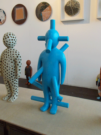 The exhibition Other Origins takes it’s name from the series of ceramic sculptures developed for this presentation. These figures are created from the same fundamental underlying mold-manufactured figure. This figure symbolises the human form as is understood across culture and time and is perceived both in terms of early or primeval depictions as well as those of a contemporary nature which incorporating a comparable stylised representation of anatomy. Onto this idealised human motif the singular character of each sculpture is described using a combination of clay material, colour palette, texture, glaze, and contrasting inanimate additions. The subsequent composition of each figure expresses a variety of characteristics, including predominantly the juxtaposition of apparently contradictory elements. This body of work should be understood as an exploration of comparability, uniqueness, similarity, and identity. The method of creation itself, contrasting sculpture and mold-manufacturing emphasising further these metaphorical references.