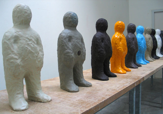 Both the series Kupfernickel and Terrestrial Beings were realised during 2006 in an extended period of work in the city of 's-Hertogenbosch in the Netherlands. A city well known for it's leaning towards ceramics and where a number of institutions form the Den Bosch Keramiek Stad (DBKS) network. This work was carried out first while acting as artist in residence in the studios of the Academie of Art and Design in the city, and subsequently while undertaking a work period at the nearby centre for experimental practice, the European Ceramic Workcentre (EKWC). Though differing clearly in scale, both series were created using a combination of the same ceramic processes and techniques. These included sculpting, hand-building, mold forming, and a wide range of glazing and approaches to surface finishing. The resulting works are subsequently related yet unique and distinct sculptures. The title for both a number pieces as well as the subsequent exhibition, Kupfernickel is taken from an important historical reference relating to the designation of Nickel, one of the prime raw materials in the making of the works.