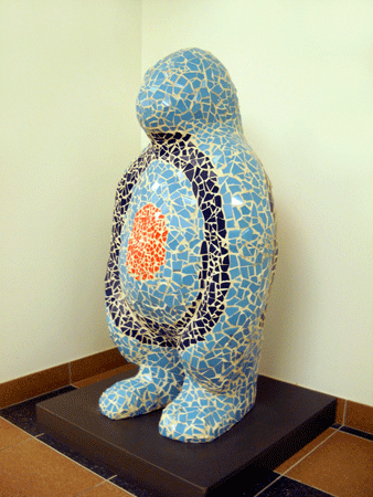 This group of sculptures from the Native Earthling series was selected by the art commission of the VU Medical Centre in Amsterdam to be permanently installed in a newly renovated wing of the hospital as part of their institutional art collection. The hospital sees the presence of artwork in and around it's buildings as playing an important role in the health and wellbeing of patients. They see such art as acting as a positive distraction to those within the institution, as being a recognisable landmark around which daily activity takes place, as offering a potential to experience artistic excellence, as an instigator of stimulating discussion, and as a change to familiar surroundings. These figures are installed along a central thoroughfare along which patients, doctors, nurses, students, and all manner of other guests to the hospital pass. The very tactile quality of the works acts as a positive addition to the specific nature of this otherwise functional part of the building, fulfilling individually and as a group the desired contributions to the daily life of the hospital.
