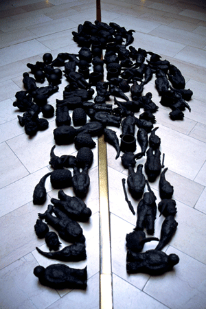Zuikerzoete Ontdekkingsreizen (Sweet Journeys of Discovery) is the title of a text written by the head of the art commission of the Gasunie. This text accompanied a solo presentation of my works in the monumental entrance and central hall area of their headquarters in Groningen. This exhibition coincided with the tenth anniversary of my practice being based in the Netherlands. It was apt therefore that this presentation should take the form of a summation of a number of series which had been developed during previous years. Given the grandeur of the space itself there was also a particular suitability for the placement of larger sculptures, though there were also a number of niches in which smaller sculptures could be placed. The particular geography of this interior space presented the opportunity to position the works along a central dividing line which extends straight through the building, connecting the sculptures both formally in terms of their installation, as well as suggesting an inherent lineage of historical references from one to the other. Emphasising both the developmental nature of these works as well as their unifying autobiographical character.