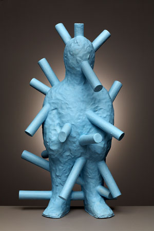 This series of sculptures was developed during a period as artist in residence at the Northern Clay Center (NCC) in Minneapolis. The works were made during a three month period at the beginning of 2007 and brought together formal, conceptual, and aesthetic concerns which had been present as themes prior to this period with ideas and influences which were advanced specifically by the particular nature and characteristics of the location in which the NCC is situated. A seemingly massive, almost primitive, monolithic figurative form was initially modelled and subsequently mold manufactured to serve as the ground onto which all manner of formal additions, alterations, colour, and surface treatments are brought. As if this static image of a person were the canvas onto which specific influence becomes visualised. Though beginning ostensibly as the same character each figure has evolved a different personality. These works were exhibited subsequently in the NCC galleries at the conclusion of the period in residence in the exhibition 5 McKnight Artists. This period in residence was made possible by the generous support of the McKnight Foundation.