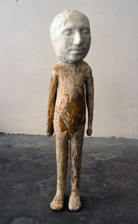 Range was both title and central theme of an exhibition which employed a variety of experimental processes using ceramic in it's broadest sense to portray the figure. What can be viewed as more accepted material qualities of the medium itself were utilised and often combined with a frequently exploratory approach to it's handling. Testing as it were the range of possiblities with which clay in it's raw or unfired state, as well as ceramic in it's fixed condition could be exercised to suggest both new interpretations of the human form as well as alternative ways of using this material. The figure acts in these works as a ground as it were onto which experiments are drawn, coupled, bound, adhered, wrapped, or fused. The process presents a visual expression which communicates a somewhat incongruous almalgamation of natural qualities with machine-made interventions. They suggest not only a visual rendering of the figure outwardly but one which also describes the inner workings of these individuals.
