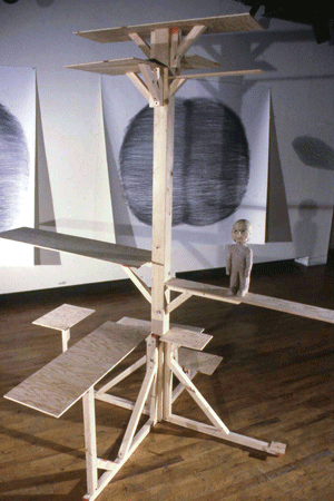 This installation in the Schaeffler Gallery was the culmination of a period of postgraduate study and research at Pratt Institute in Brooklyn, New York City. This was made possible through an exchange agreement existing between the Sandberg Instituut in Amsterdam, at which I was approaching the final stages of participation at the time, and this American partner. During this period in residence the opportunity was taken to take part in and digest from the wide range of possibilities, fields of practice, departments, mentors, and social context this American visual arts institute offered. Given the freedom afforded such visiting artists It became a subsequently multifaceted period of work, one which became visualised through the installation in the Schaeffler Gallery. The works were developed and presented as part of a single interrelated installation which incorporated drawings, found tree branch and timber constructions, clay models, paper-mache, video projections, and sound recordings. The wide range of materials was utilised to render experimental physical and intellectual interpretations of human figure portraiture.