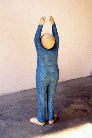 Skinmen is the name given to a number of series of figurative works which experimented with ideas concerning the human form as well as a wide range of ceramic processes, techniques, and materials. These works were exhibited in several solo and group exhibitions and in a variety of gallery and presentational settings. The figures were developed using hand-built as well as mold-forming processes, applying a natural element of variance when used in combination with each other. These formal properties serve as the pallette onto which an extensive range of surface additions are poured, brushed, dipped, sprayed, and drawn. These glazes, pigments, and engobes bring idiosyncratic characteristic to each figure, providing an identity to the sculptures which suggests an equally broad range of interpretations. The figures are at once innocent yet confrontational, archaic yet futuristic, accessible yet mysterious, provocative as well as comforting. They transmit, both as individual works and in series a diverse representation of recognisable attributes and human sensibilities.